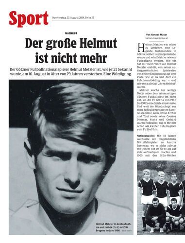 Der Götzner Fußballnationalspieler Helmut Metzler ist, wie jetzt bekannt wurde, am 16. August in Alter von 79 Jahren verstorben. Eine Würdigung.