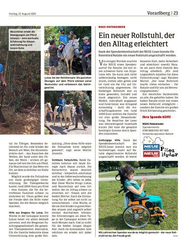Dank der Spendenbereitschaft der NEUE-Leser konnte für Patenkind Natalie ein neuer Rollstuhl angeschafft werden.