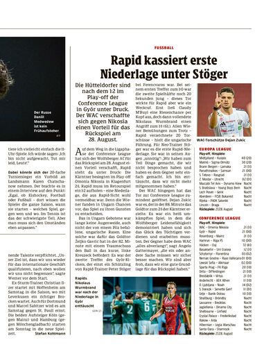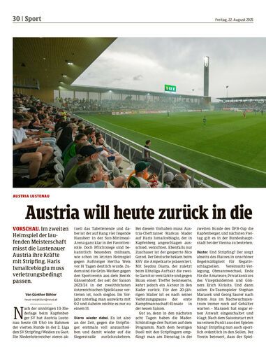 Vorschau. Im zweiten Heimspiel der laufenden Meisterschaft misst die Lustenauer Austria ihre Kräfte mit Stripfing. Haris Ismailcebioglu muss verletzungsbedingt passen.