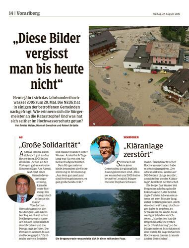 Heute jährt sich das Jahrhunderthochwasser 2005 zum 20. Mal. Die NEUE hat in einigen der betroffenen Gemeinden nachgefragt: Wie erinnern sich die Bürgermeister an die Katastrophe? Und was hat sich seither im Hochwasserschutz getan?