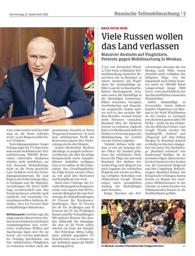 Massiver Ansturm auf Flugtickets. Proteste gegen Mobilmachung in Moskau.