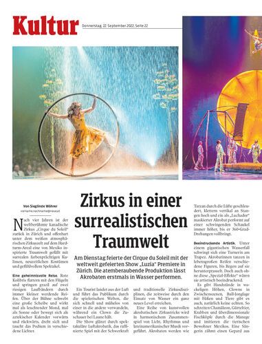 Am Dienstag feierte der Cirque du Soleil mit der weltweit gefeierten Show „Luzia“ Premiere in Zürich. Die atemberaubende Produktion lässt Akrobaten erstmals in Wasser performen.
