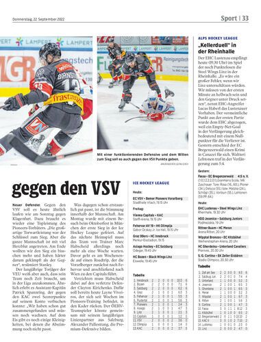 Die Bemer Pioneers Vorarlberg treffen heute (19.15 Uhr) auswärts auf den VSV. Die Kärntner sind nach zwei Niederlagen bereits angeschlagen.