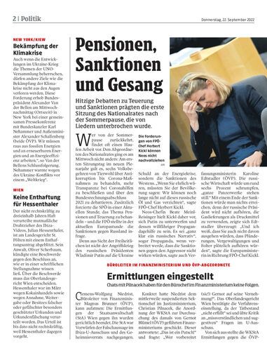 Hitzige Debatten zu Teuerung und Sanktionen prägten die erste Sitzung des Nationalrates nach der Sommerpause, die von Liedern unterbrochen wurde.