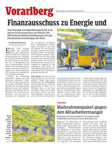Finanzausschuss zu Energie und Pensionisten