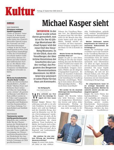 Interview. In der Szene wurde schon davon gemunkelt, nun ist es fix: Der 42-jährige Montafoner Michael Kasper wird der neue Chef des Vorarlberg Museums. Es ist ein Glück, dass ein Vorarlberger, der über intime Kenntnisse der Geschichte des Landes verfügt, das Programm des Bregenzer Museumstankers übernimmt. Im NEUE-Interview präzisiert er seine Pläne für das Haus am Kornmarkt.