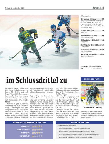 Spielbericht. Der EHC Lustenau feiert nach der knappen Auswärtsniederlage gegen Zell am See vor 500 Zuschauern einen verdienten 4:1-Heimerfolg gegen die Falken aus Fassa.