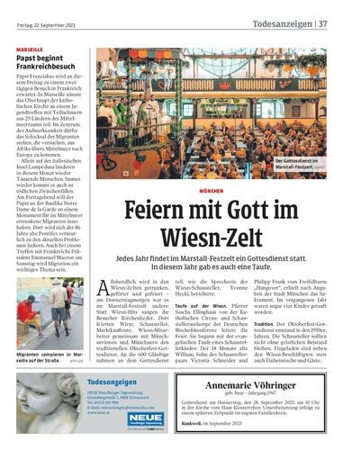 Jedes Jahr findet im Marstall-Festzelt ein Gottesdienst statt.