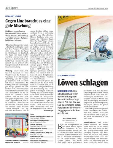 Die Pioneers empfangen heute um 19.30 Uhr die Black Wings aus Linz, am Sonntag wartet die schwere Aufgabe bei Meister Salzburg.