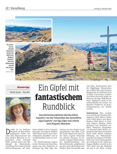 Geschichtenerzählerin Hertha Glück wandert von der Talstation des Sessellifts „Uga Express“ zur Uga Alpe und weiter zum Ragazer Blanken.