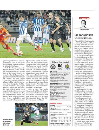 Mit dem 0:1 gegen Real Sociedad verloren die Grazer auch das dritte Spiel in der Europa League. Jon Gorenc Stankovic sah im Finish die gelb-rote Karte.