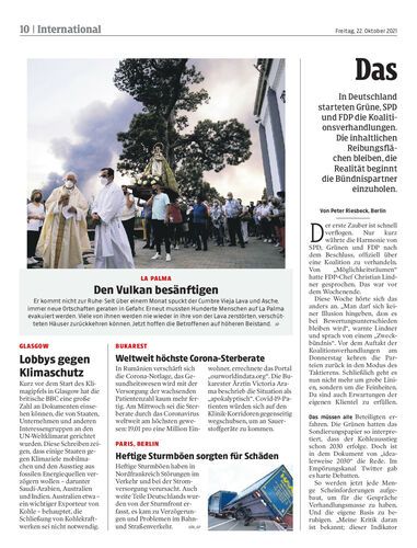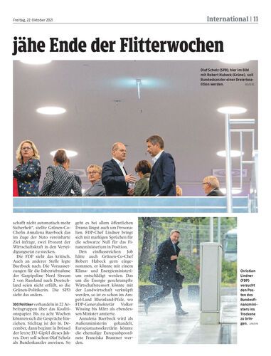 In Deutschland starteten Grüne, SPD und FDP die Koalitionsverhandlungen. Die inhaltlichen Reibungsflächen bleiben, die Realität beginnt die Bündnispartner einzuholen.