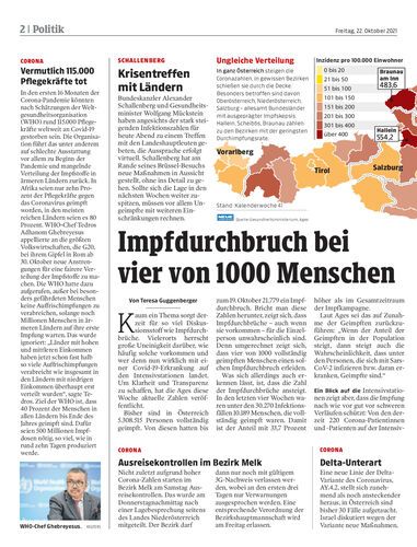 Während die Corona-Infektionen in ganz Österreich steigen, legt die Ages neue Zahlen zu Impfdurchbrüchen vor. Im Schnitt sind davon nur vier von 1000 vollständig Geimpften betroffen.
