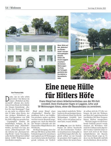 Franz Riepl hat einen Arbeiter-Wohnbau aus der NS-Zeit veredelt. Dem Vierkanter fügte er Loggien, Lifte und 50 Wohnungen hinzu, ohne die Bausubstanz zu zerstören.