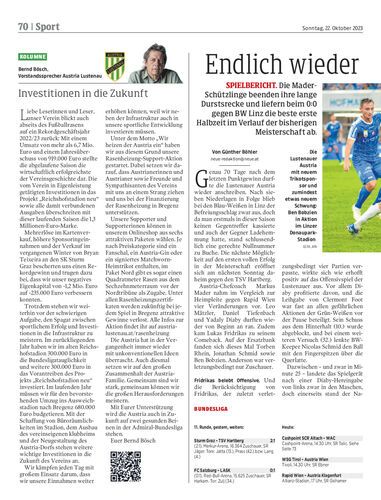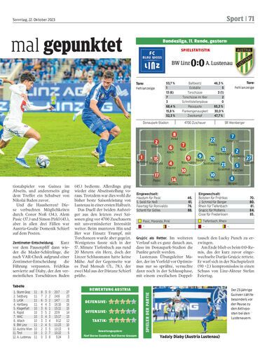Spielbericht. Die Mader-Schützlinge beenden ihre lange Durstsrecke und liefern beim 0:0 gegen BW Linz die beste erste Halbzeit im Verlauf der bisherigen Meisterschaft ab.
