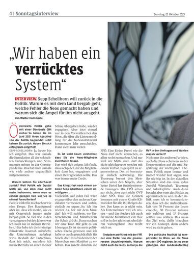 Interview. Sepp Schellhorn will zurück in die Politik. Warum es mit dem Land bergab geht, welche Fehler die Neos gemacht haben und warum sich die Ampel für ihn nicht ausgeht. Von Walter Hämmerle