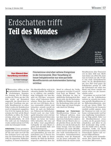 Finsternisse sind eher seltene Ereignisse in der Astronomie. Über Vorarlberg ist heuer beispielsweise nur eine partielle Mondfinsternis am kommenden Samstag sichtbar.