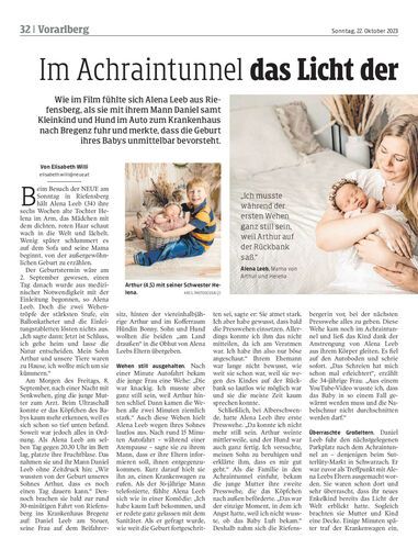 Wie im Film fühlte sich Alena Leeb aus Riefensberg, als sie mit ihrem Mann Daniel samt Kleinkind und Hund im Auto zum Krankenhaus nach Bregenz fuhr und merkte, dass die Geburt ihres Babys unmittelbar bevorsteht.