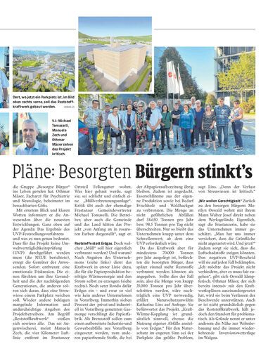 In einem betrieblichen Kraftwerk in Frastanz sollen aufbereitete Abfälle verbrannt werden. Das sorgt für dicke Luft im Dorf. Eine Anrainerin will nun Beschwerde bei Gericht einlegen.