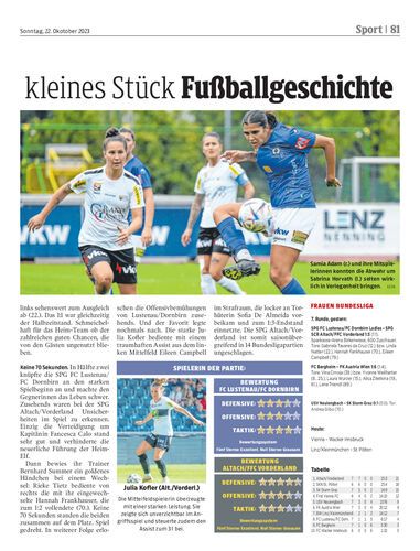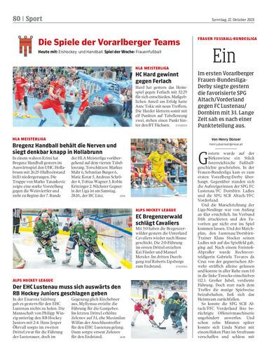 Im ersten Vorarlberger Frauen-Bundesliga-Derby siegte gestern die favorisierte SPG Altach/Vorderland gegen FC Lustenau/Dornbirn mit 3:1. Lange Zeit sah es nach einer Punkteteilung aus.
