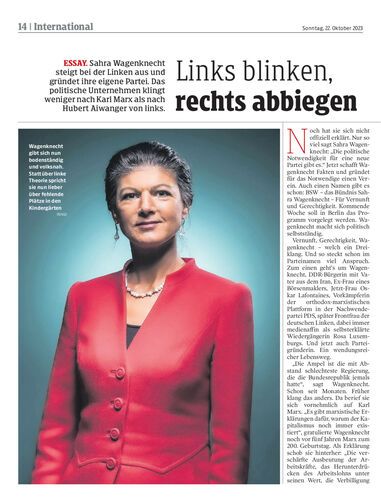 ESSAY. Sahra Wagenknecht steigt bei der Linken aus und gründet ihre eigene Partei. Das politische Unternehmen klingt weniger nach Karl Marx als nach Hubert Aiwanger von links.