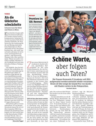 Die Frauen-Rennserie F1 Academy soll 2024 aufgewertet werden und nicht wieder versanden. Heute (21 Uhr) steigt der Grand Prix von Austin – mit Charles Leclerc in der Pole Position. Von Karin Sturm
