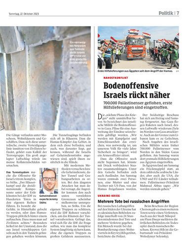 700.000 Palästinenser geflohen, erste Hilfslieferungen sind eingetroffen.