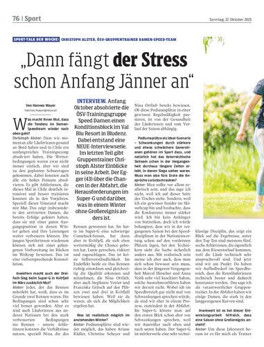 Interview. Anfang Oktober absolvierte die ÖSV-Trainingsgruppe Speed Damen einen Konditionsblock im Val Blu Resort in Bludenz. Dabei entstand eine NEUE-Interviewserie. Im letzten Teil gibt Gruppentrainer Christoph Alster Einblicke in seine Arbeit. Der Egger (43) über die Chancen in der Abfahrt, die Herausforderungen im Super-G und darüber, was in einem Winter ohne Großereignis anders ist.