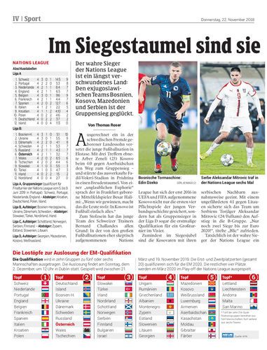 Der wahre Sieger der Nations League ist ein längst verschwundenes Land: Den exjugoslawischen Teams Bosnien, Kosovo, Mazedonien und Serbien ist der Gruppensieg geglückt.