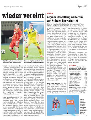 Osborne-Paradis mit Hubschrauber abtransportiert. Vonn fehlt in Lake Louise. Schienbeinbruch von Elena Fanchini.