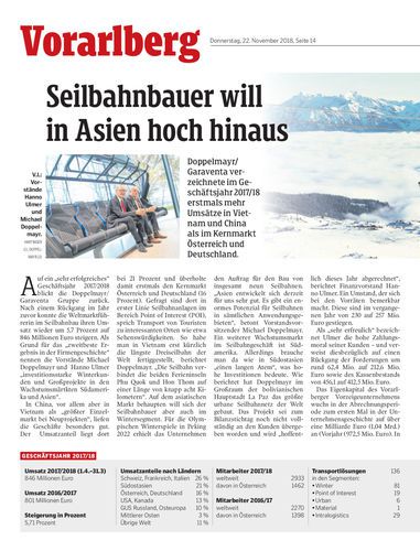 Doppelmayr/Garaventa verzeichnete im Geschäftsjahr 2017/18 erstmals mehr Umsätze in Vietnam und China als im Kernmarkt Österreich und Deutschland.
