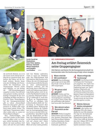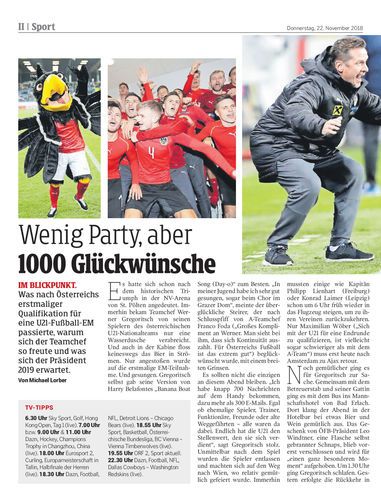 im BLICKPUNKT. Was nach Österreichs erstmaliger Qualifikation für eine U21-Fußball-EM passierte, warum sich der Teamchef so freute und was sich der Präsident 2019 erwartet. Von Michael Lorber
