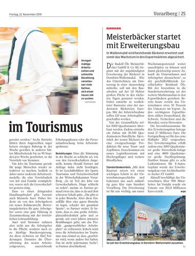 In Wallenmahd wird bestehende Bäckerei erweitert und somit das Wachstum in den Exportmärkten abgesichert.