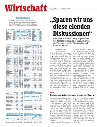 Industrie-Präsident Georg Kapsch wirft vor dem Hintergrund der Casinos-Affäre die Frage auf, „ob der Staat da überall dabei sein muss“.