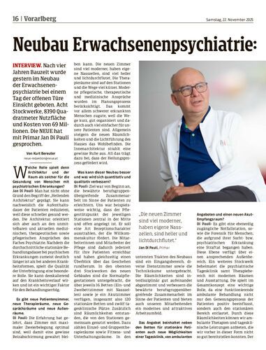 Interview. Nach vier Jahren Bauzeit wurde gestern im Neubau der Erwachsenenpsychiatrie bei einem Tag der offenen Türe Einsicht geboten. Acht Stockwerke, 8390 Quadratmeter Nutzfläche und Kosten von 69 Millionen. Die NEUE hat mit Primar Jan Di Pauli gesprochen.