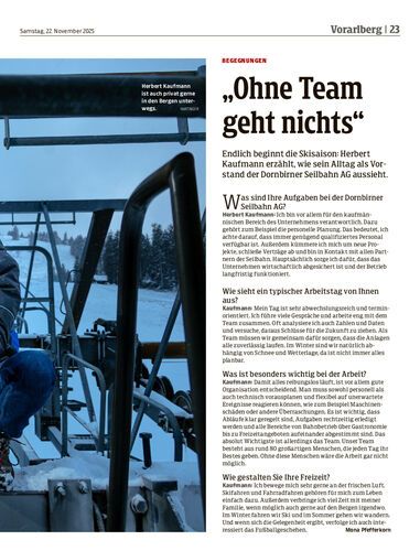 Endlich beginnt die Skisaison: Herbert Kaufmann erzählt, wie sein Alltag als Vorstand der Dornbirner Seilbahn AG aussieht.