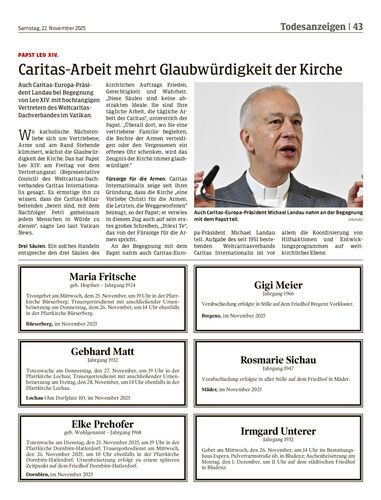 Caritas-Arbeit mehrt Glaubwürdigkeit der Kirche