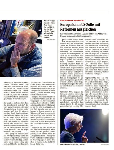 EZB-Präsidentin Christine Lagarde fordert den Abbau von Hürden im europäischen Binnenmarkt.