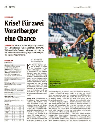 Vorschau. Der SCR Altach empfängt heute in der 14. Bundesliga-Runde um 17 Uhr den WAC. Während beim Gegner vieles neu ist, nutzten bei den Hausherren zwei junge Vorarlberger die eigene Negativserie.