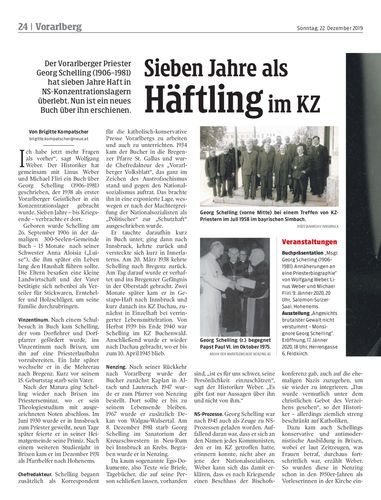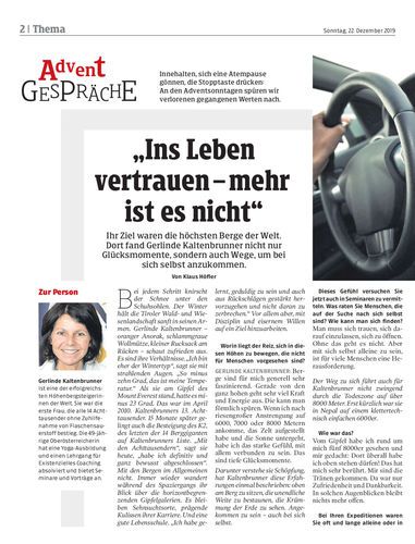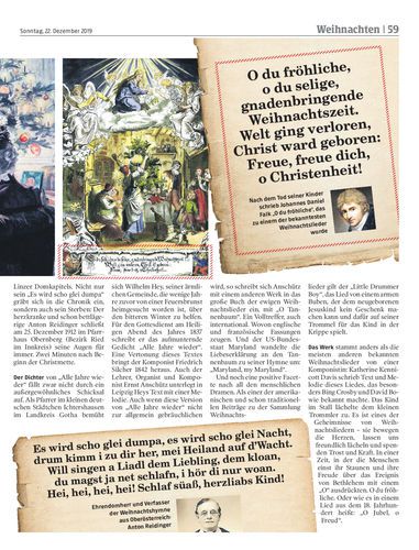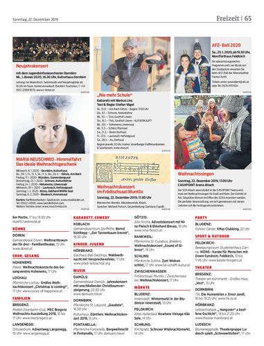 Adventgespräche. Schwester Rita-Maria ist Äbtissin der Schwestern der Heiligen Klara im Kapuzinerkloster in Bregenz. Ihr Weihnachtswunsch: Jeder möge dem Geheimnis Gottes begegnen. Seiten 20/21 Klaus Hartinger
