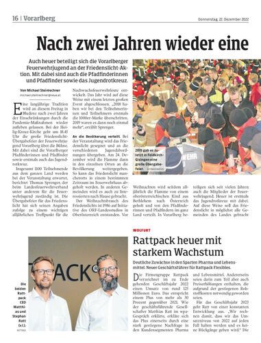 Auch heuer beteiligt sich die Vorarlberger Feuerwehrjugend an der Friedenslicht-Aktion. Mit dabei sind auch die Pfadfinderinnen und Pfadfinder sowie das Jugendrotkreuz.