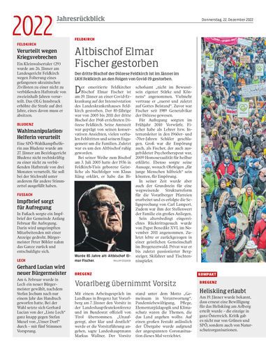 Der dritte Bischof der Diözese Feldkirch ist im Jänner im LKH Feldkirch an den Folgen von Covid-19 gestorben.