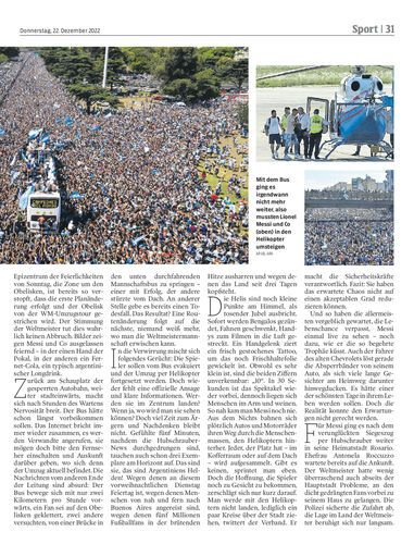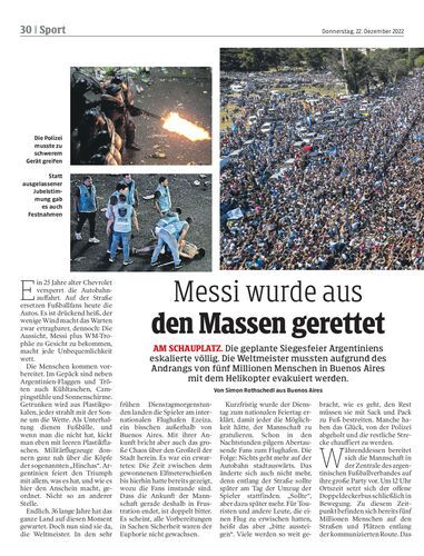 Am Schauplatz. Die geplante Siegesfeier Argentiniens eskalierte völlig. Die Weltmeister mussten aufgrund des Andrangs von fünf Millionen Menschen in Buenos Aires mit dem Helikopter evakuiert werden. Von Simon Rothschedl aus Buenos Aires