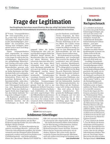 Das Burgtheater hat einen neuen Direktor. War das nötig? Auf jeden Fall dann, wenn man die Personaldebatte letztendlich als Relevanzdebatte betrachtet.
