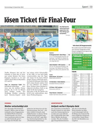 Spielbericht. Der ECB feiert einen 4:2-Heimsieg gegen die Youngsters aus Linz, setzt sich in der Tabelle wieder vor Lustenau und erobert in Ö-Wertung Rang zwei.