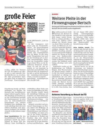 Antrag auf Eröffnung eines Konkursverfahrens über die Bertsch Service GmbH wurde eingebracht.
