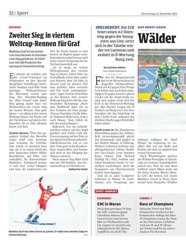 Zweiter Sieg in viertem Weltcup-Rennen für Graf