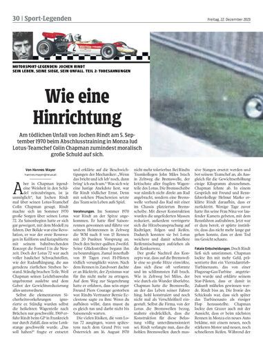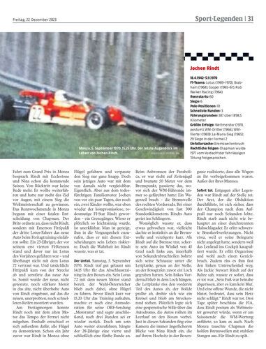 Am tödlichen Unfall von Jochen Rindt am 5. September 1970 beim Abschlusstraining in Monza lud Lotus-Teamchef Colin Chapman zumindest moralisch große Schuld auf sich.