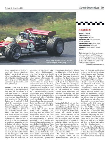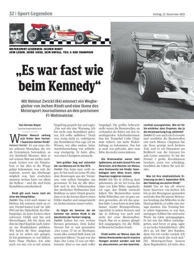 Mit Helmut Zwickl (84) erinnert ein Wegbegleiter von Jochen Rindt und eine Ikone des Motorsport-Journalismus an den postumen F1-Weltmeister.