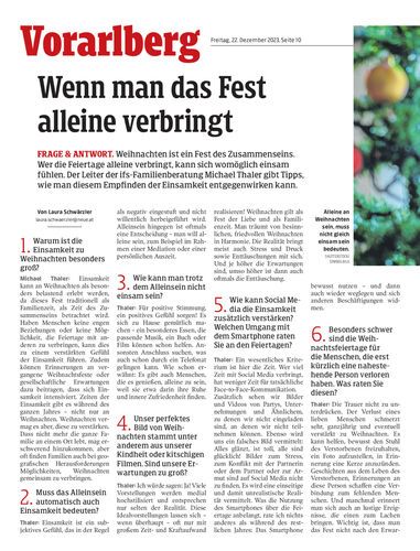 Frage & Antwort. Weihnachten ist ein Fest des Zusammenseins. Wer die Feiertage alleine verbringt, kann sich womöglich einsam fühlen. Der Leiter der ifs-Familienberatung Michael Thaler gibt Tipps, wie man diesem Empfinden der Einsamkeit entgegenwirken kann.